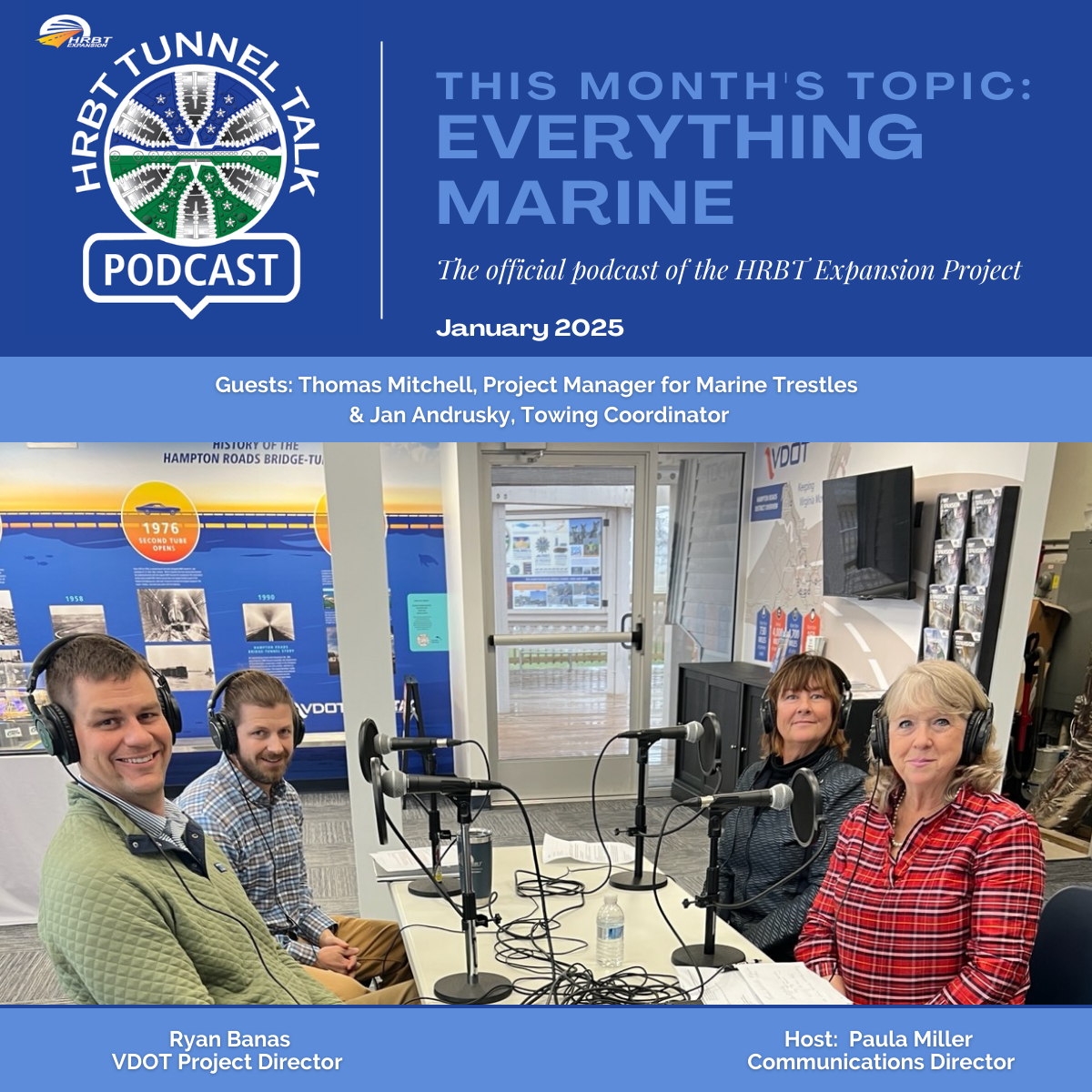 Boats, tugs, barges, bridges and more! Managing marine works at the HRBT Expansion project is the topic of our latest HRBT Tunnel Talk segment. The podcast explores the importance of local knowledge on the project, and we share the vast experience our team members bring to it, from landmark projects like the Midtown Tunnel and post-9/11 debris removal at the World Trade Center. We also discuss the significance of safety, environmental protections, and the unique challenges of working in the Hampton Roads area. Tune in as we uncover the behind-the-scenes efforts ensuring that this monumental project not only progresses smoothly, but also upholds the highest standards of quality and safety.