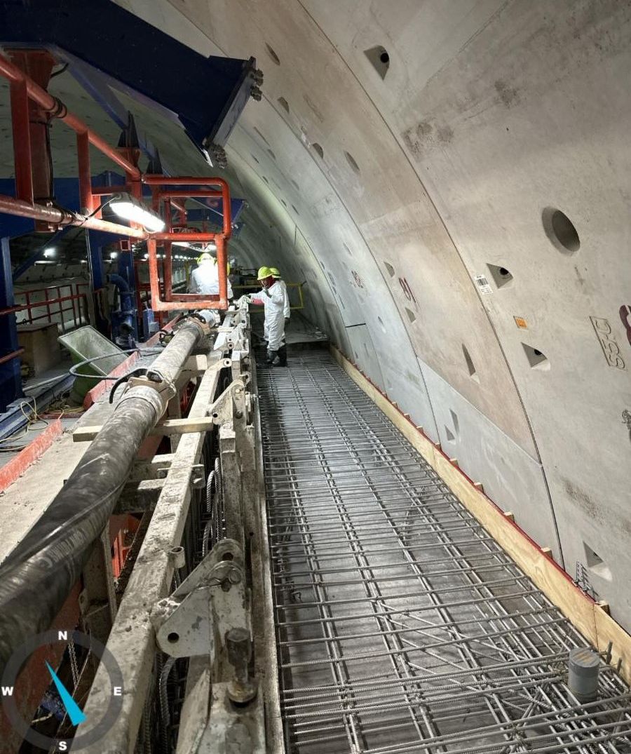 Even though the tunnel boring operations were temporarily paused, interior tunnel crews were hard at work advancing the interior construction for the first of the twin tunnels.