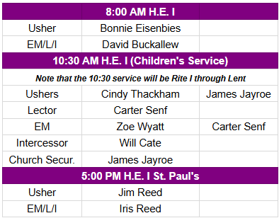 This evening at 6 pm: ECW Food for Thought Featuring Victoria Jayroe, Holy Trinity Parishioner, who will speak about her experiences volunteering for Baby Read, an early literacy program. This event is open to all church members. Please sign up to bring a dish or beverage by clicking here.