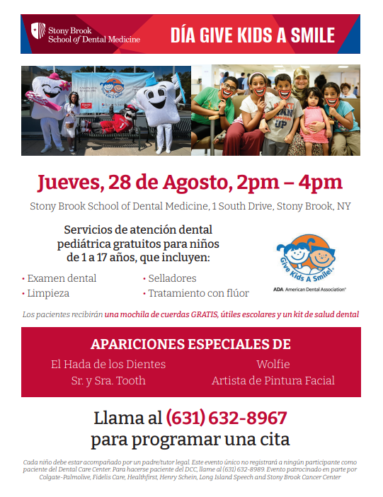 Stonybrook SChool of Dental Medicine is offering FREE pediatric dental care services for children 1-17 years old, including dental screening, cleaning, sealanta, and fluoride treatment. Parents will receive a FREE string backpack, school supplies, and dental health kit. Join them on Thursday August 28th from 2PM-4PM at Stony Brook School of Dental Medicine (1 South Drive, Stony Brook, NY).