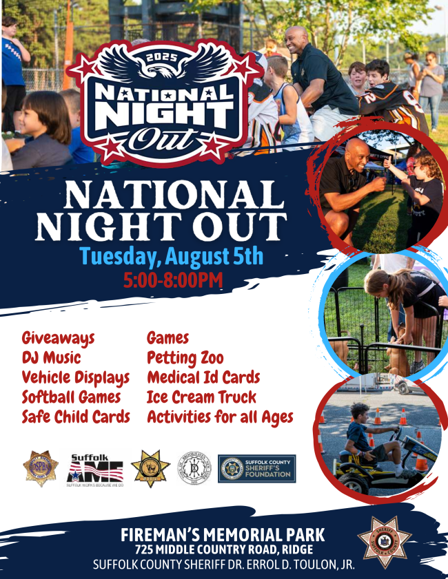 Catch HWCLI at the National Night Out on Tuesday August 5th from 5PM-8PM at Fireman's Memorial Park (725 Middle Country Road, Ridge)!
