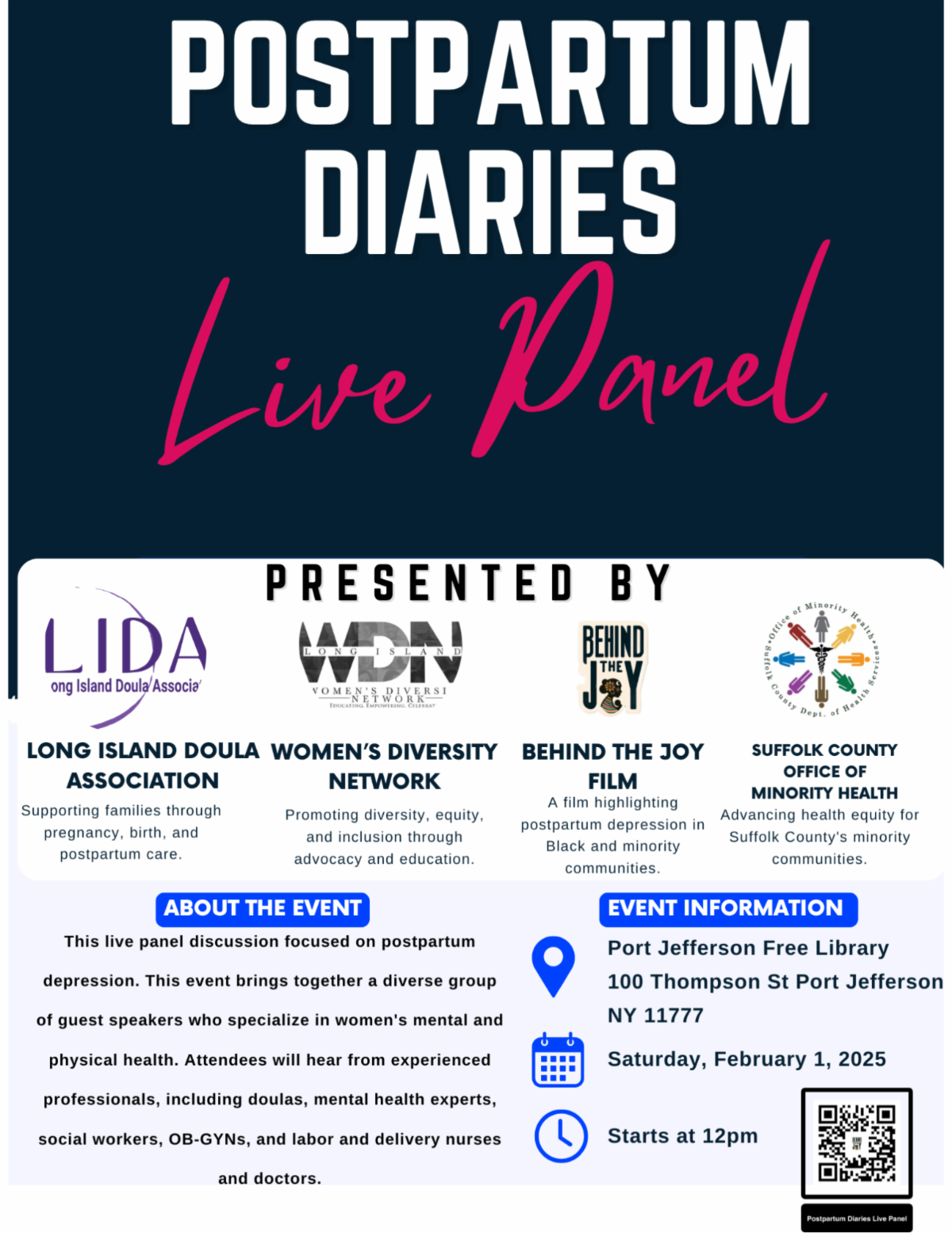 Prepare for an unforgettable and transformative experience at the Postpartum Diaries Live Panel! This powerful workshop and live panel discussion is designed to shed light on postpartum depression, a condition that impacts countless families yet often goes unspoken. Together, we’ll create a safe space for learning, healing, and empowerment.