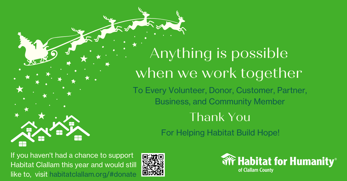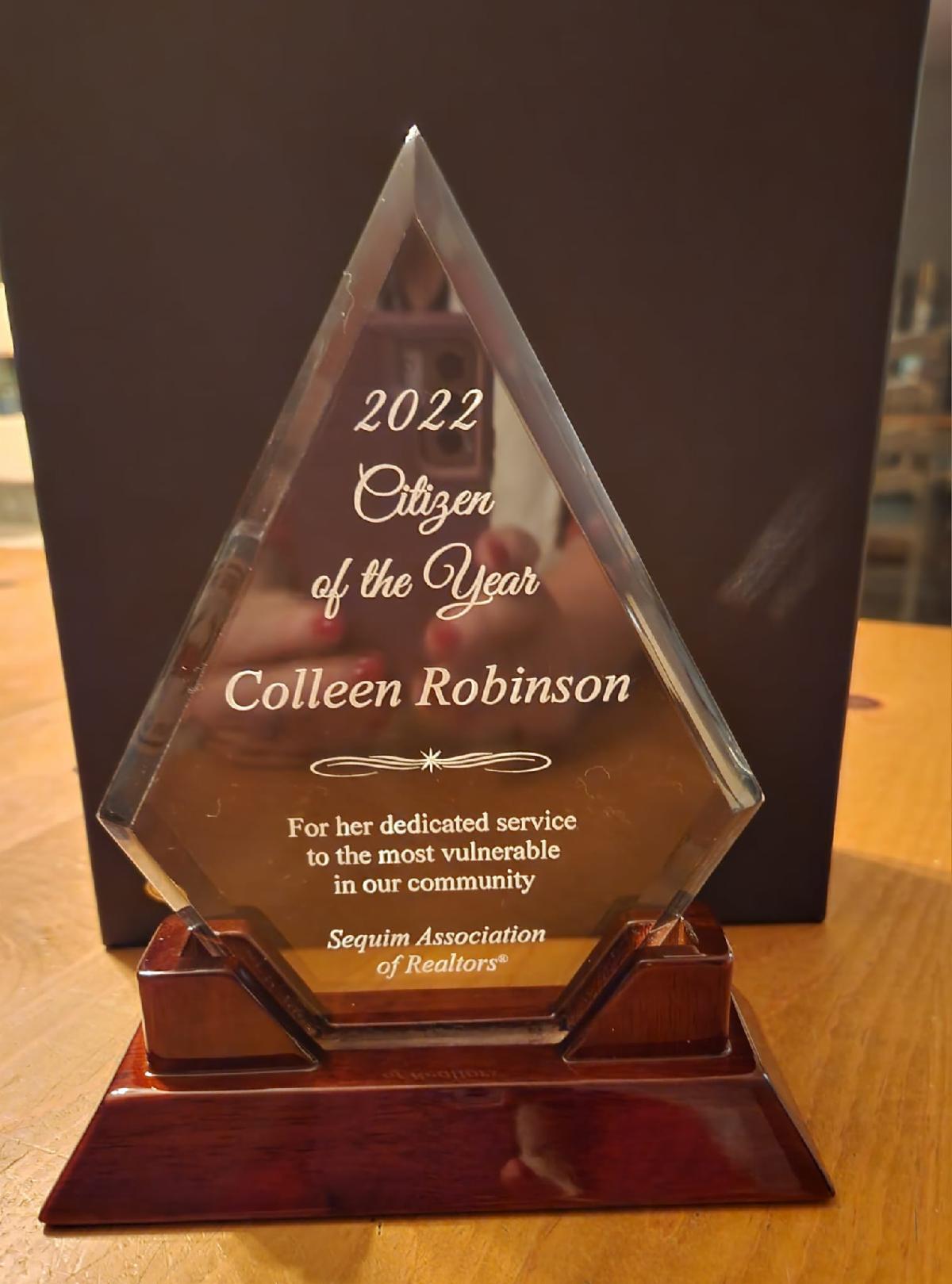 On Saturday, December 10, 2022 the Sequim Association of Realtors honored our Affiliate CEO, Colleen Robinson with the Citizen of the Year award. Colleen worked tirelessly with other Community Members to encourage the City of Sequim to allow multi-family zoning within Sequim City limits, on Oct 10, 2022 the City Council voted unanimously to allow multi-family zoning. Colleen also volunteers her time with many local organizations like Sequim Sunrise Rotary, Clallam EDC Board Member and Clallam County Housing Solutions Committee to name just a few. Way to go Colleen!