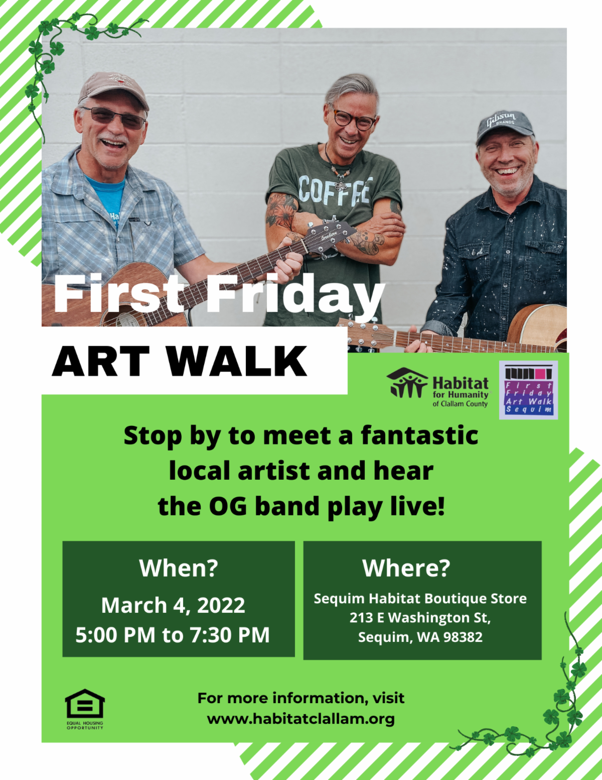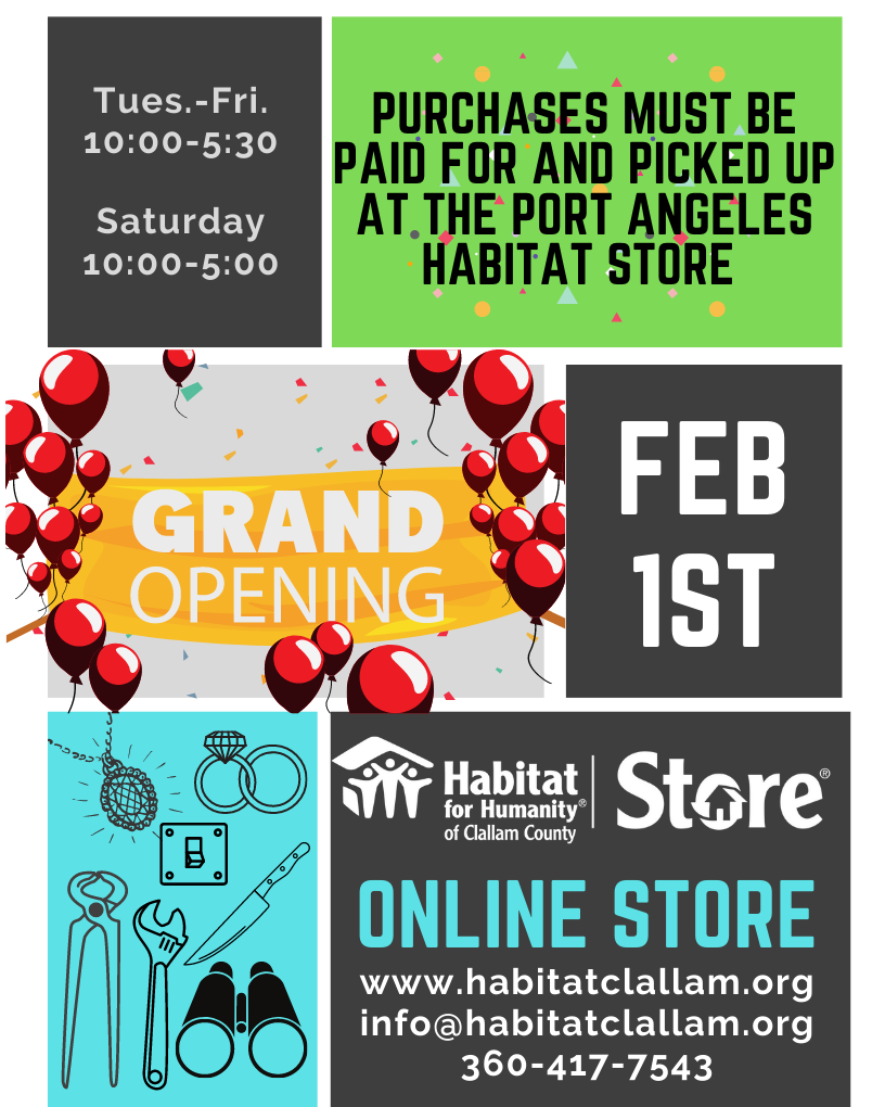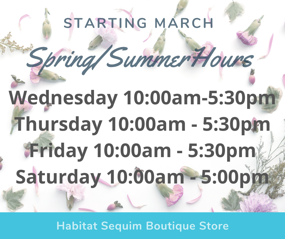 Join us at the Sequim Habitat Boutique Store on March 4, 5:00pm~7:30pm. Live music by local band The OG!