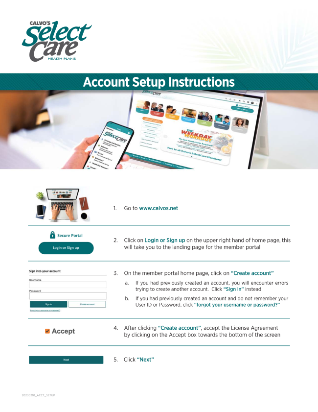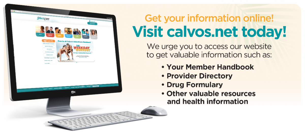 Visit our web portal, www.calvos.net and create your account, as it provides access to many resources and information on our services. To create your account you need the following: Full name, as you signed when enrolling with us and either your member I.D. or your SS number. Once you create your account; you will be able to access the following: