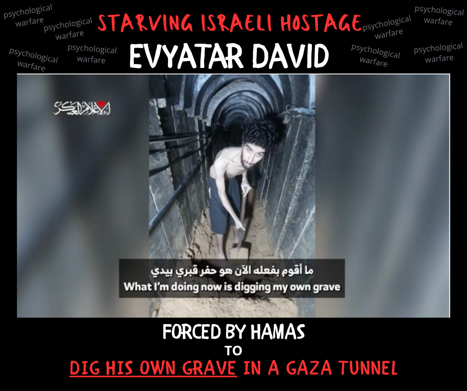From an emaciated hostage forced to dig his “own grave” to another, skeletal and clutching his stomach, pleading for food and saying he’s “on the verge of death,” these carefully timed videos are not just records of abuse – they are psychological weapons. Crafted to provoke outrage and manipulate opinion, the footage evokes Holocaust imagery and advances Hamas’s strategy to destabilize Israel emotionally and politically. Rather than exposing the hostages’ suffering, the videos use starved, isolated captives as tools in a broader propaganda campaign.