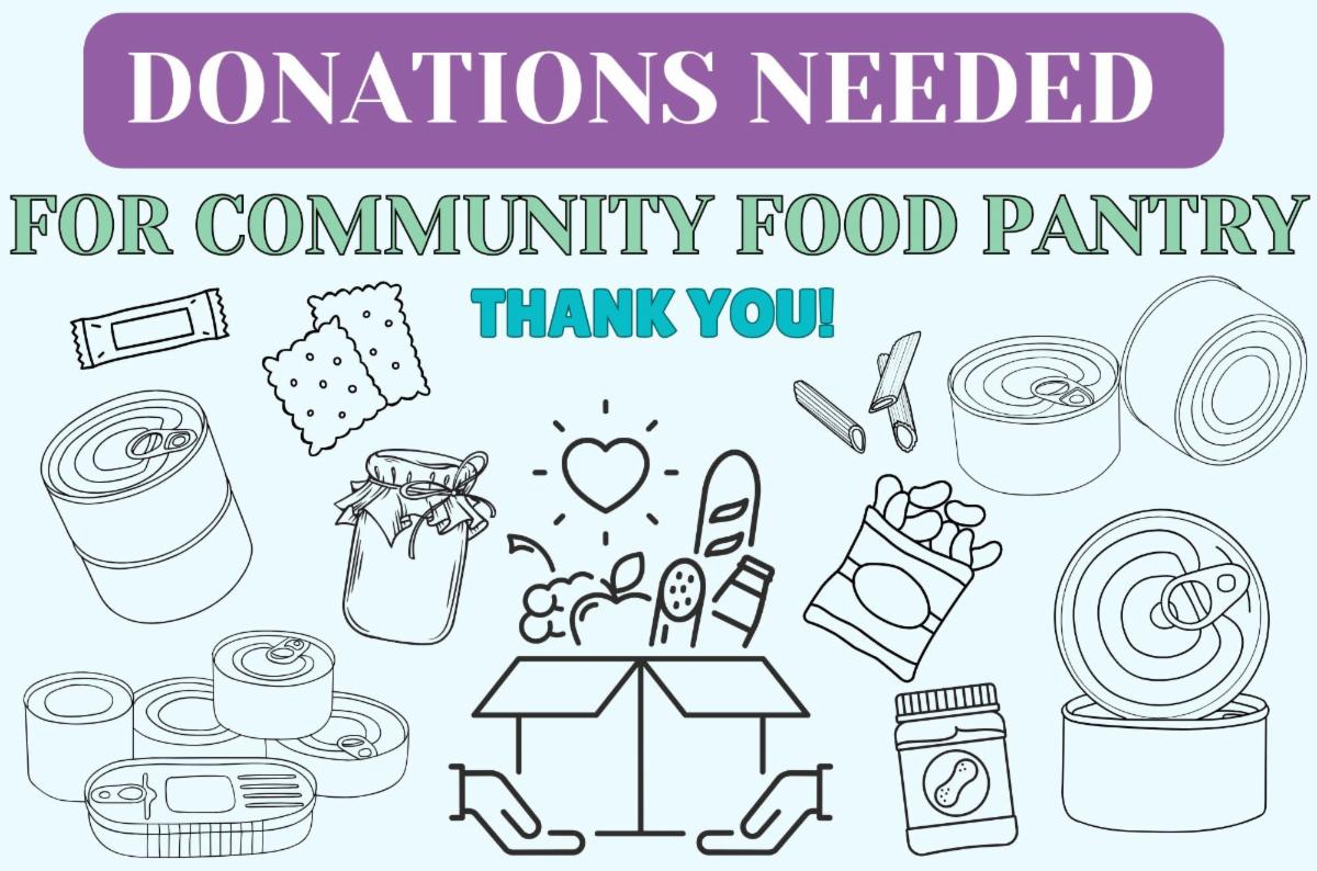 We are running are low on items for our community food pantry. It is getting quite popular! We would really appreciate any contribution you can make. It can be canned goods, pasta, rice, crackers, individual snacks, granola or protein bars, flour, peanut butter, ramen whatever you think would help someone else! We do ask that it be non-perishable and food that will not freeze outside due to the cold weather!