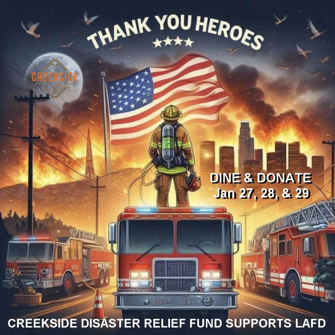 MUTUAL AID: LA Fire Fundraiser, Phase Three > NOW | Join Us This Monday, Tuesday, and Wednesday as Creekside Pizza & Taproom wraps up a month of fundraisers for LA Disaster Recovery. Staring at 12 noon, 20% of ALL SALES & REVENUES ALL DAY AND NIGHT go to immediate support via Creekside Community Emergency Fund to the LA Food Bank, Slice Out Hunger, LAFD, "Best Friends" LA pet rescue, and In Defense of Animals LA Emergency... CLICK HERE TO READ MORE | | |
