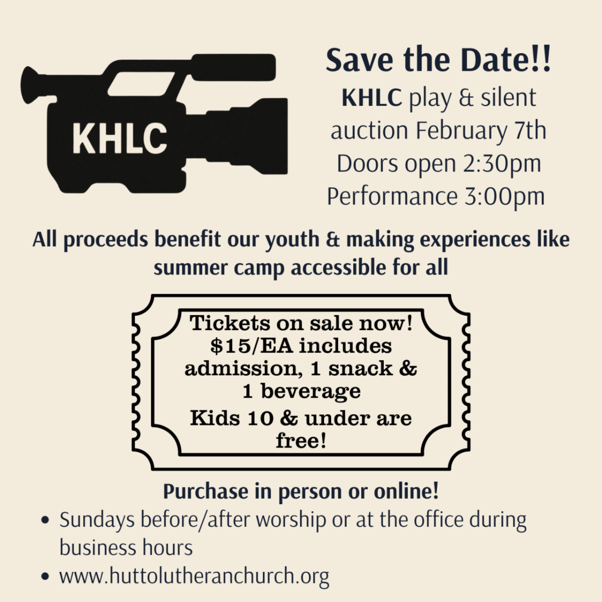 Tickets can be purchased by using the QR code to the left clicking on the QR Code or using any of the 'Four Ways To Give' options at the bottom of the HELC Webpage.