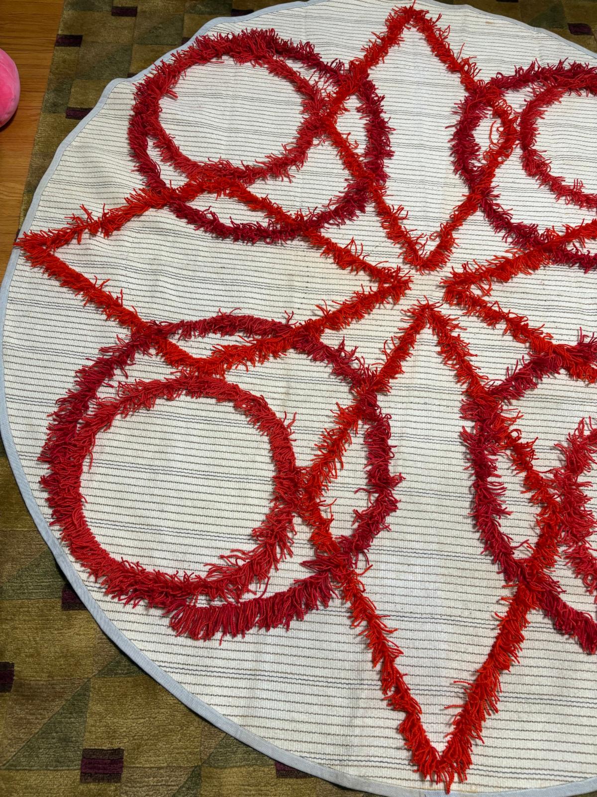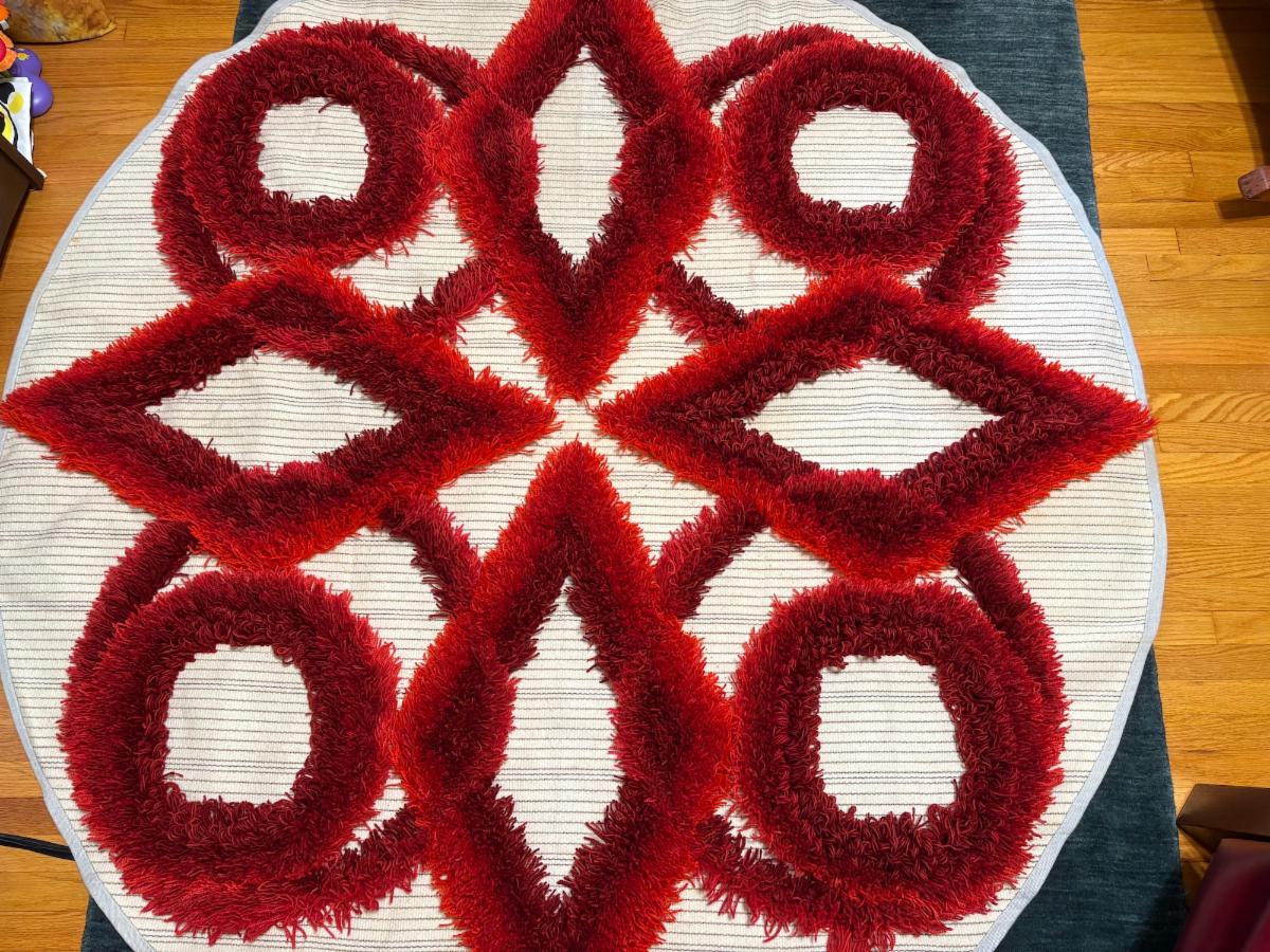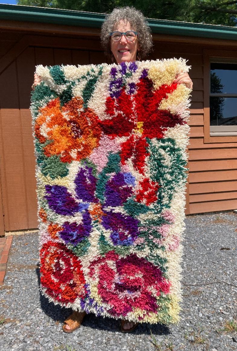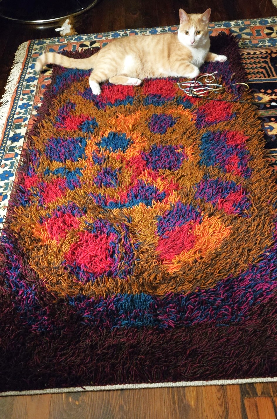One challenge was the size and weight. This 78" rya used over 90 skeins of yarn!