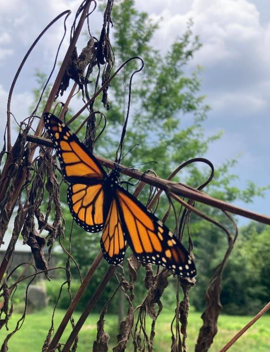 And finally, I have to share one of my biggest joys of the summer. As you may have noticed, I garden mostly for wildlife. I let milkweed grow where it wants to within reason and I reap the benefits of many monarch butterflies hanging out on the milkweed flowers and eventually laying the eggs on the milkweed leaves.