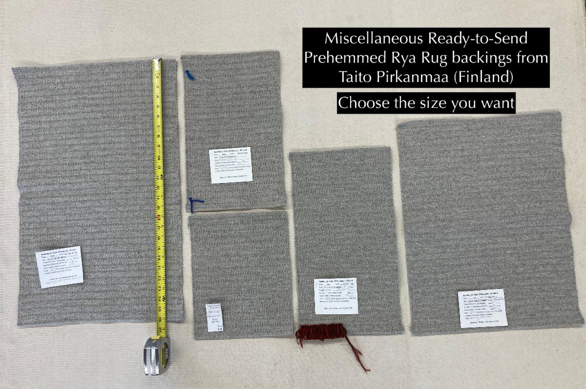 | | Ready-to-Go Small Taito Pirkanmaa backings (Finland). All have been given a preliminary hem which you can fold over to make a hollow hem for a rod when you are done. Click to see the available sizes and prices. | | | Ready-to-Go Rauma (Norway) backings of miscellaneous sizes and prices. I expect to add to this regularly. Click to see options. | | | A Few Kits Ready to Mail and $ave! | |