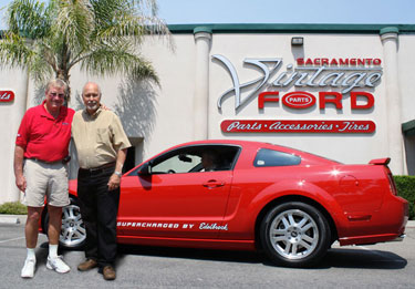 Darold getting behind the wheel of Vic's Mustang that had been recently equipped with his new Edelbrock induction system. Yes it was quick! Mike Kohout looks on as we leave the rest of the Edelbrock family to browse the store.