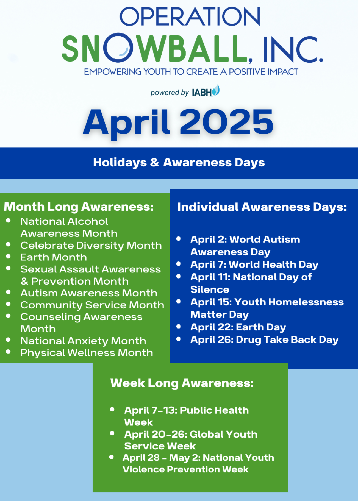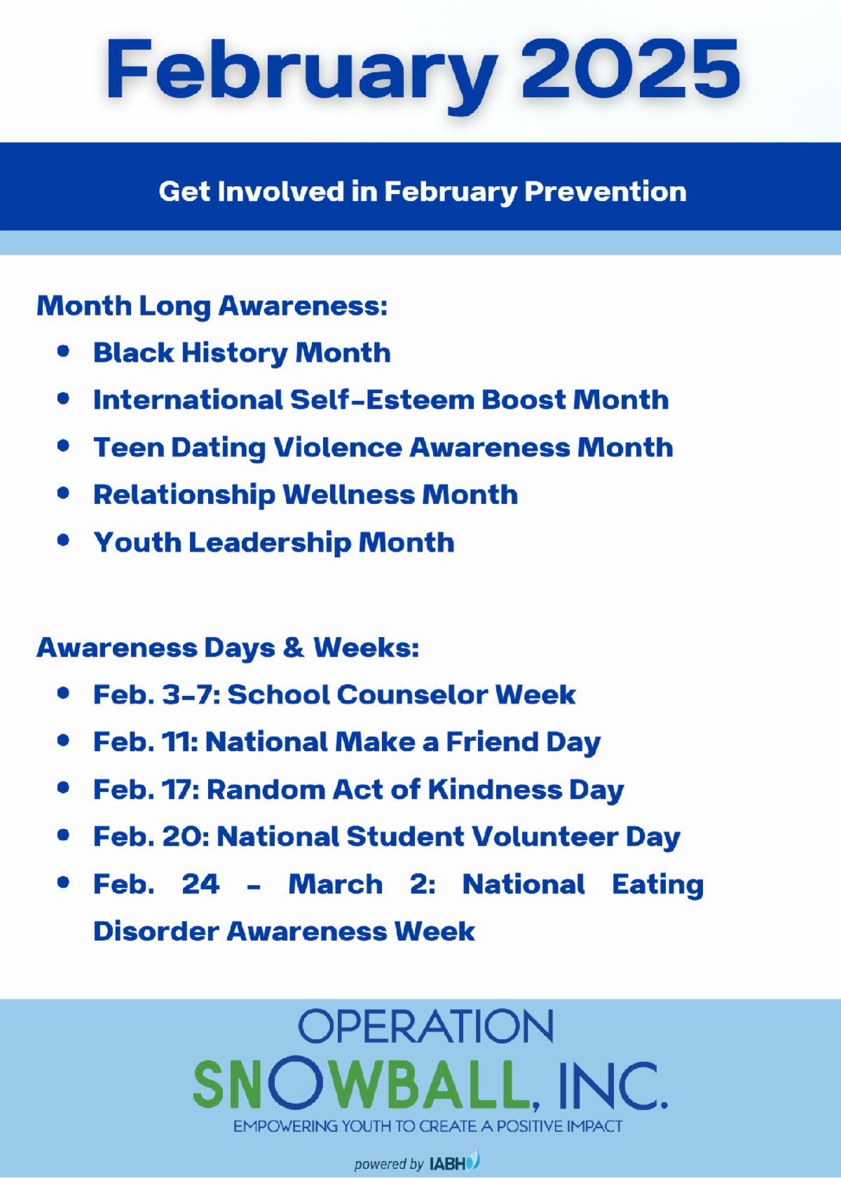 MISSION STATEMENT: Operation Snowball is an international youth program that empowers student leaders through prevention education, community advocacy, and leadership development to a create positive impact.