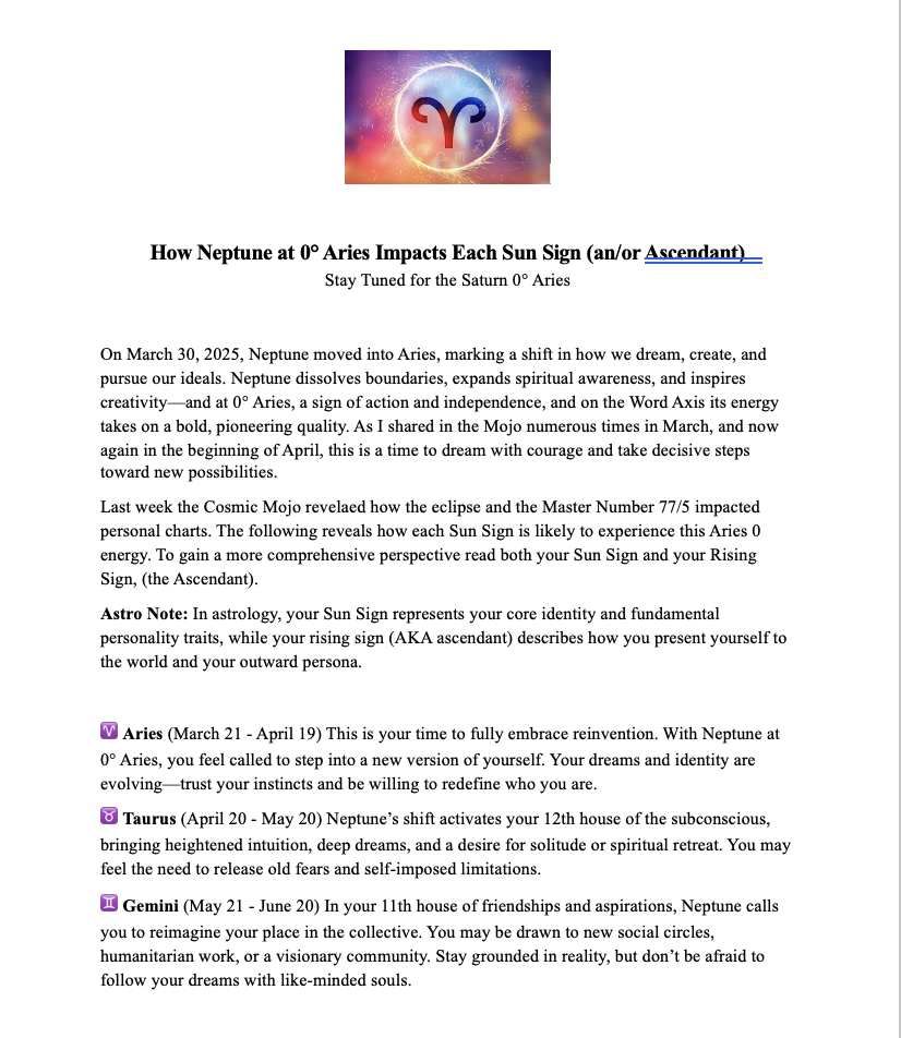 climate where traditional boundaries are challenged, and new paradigms emerge. (This, of course. seems to fit perfectly with the trends we are seeing in the current push to annex Greenland and Canada. This is, of course, further evidence of how astrologers say “You can’t make this sh—up! ) Historically, Neptune's transit through Aries has coincided with significant societal shifts. The last occurrence, from 1861 to 1875, encompassed events such as the American Civil War and the advent of war photography, reflecting the era's transformative and pioneering spirit.