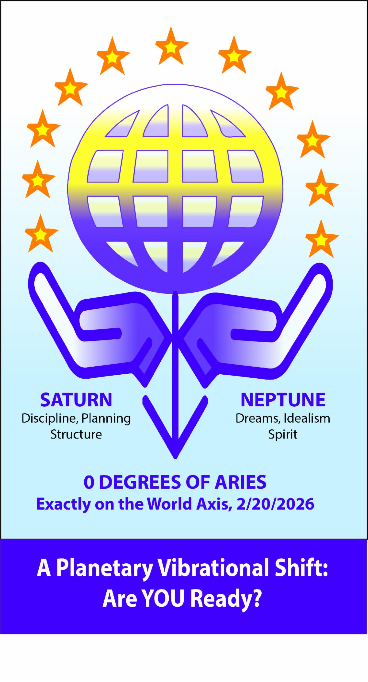 Between May 2025, and May of 2026, Saturn (structure) and Neptune (spirit) engage in a significant astrological dance. This energy will peak in February 2026 in a rare conjunction (joining of forces) that heralds the start of a new 36-year cycle. Notably these two planets will be working their transformative magic near and on the World Axis of 0° Aries. This dance will last for the coming twelve months. This cosmic set of affairs.is “a big deal”.