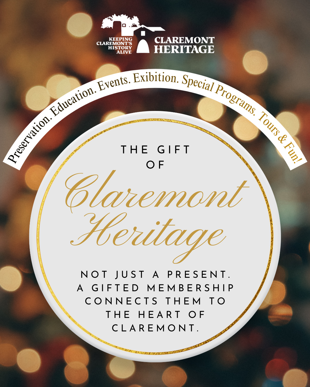 As we enter the season of giving, our Executive Director David Shearer, our Board of Directors, and I would like to highlight The Gift of Claremont Heritage — a gift that truly gives all year long. Experiences are among the most meaningful things we can offer, and a gifted membership provides exactly that: connection, culture, and a deeper sense of belonging.