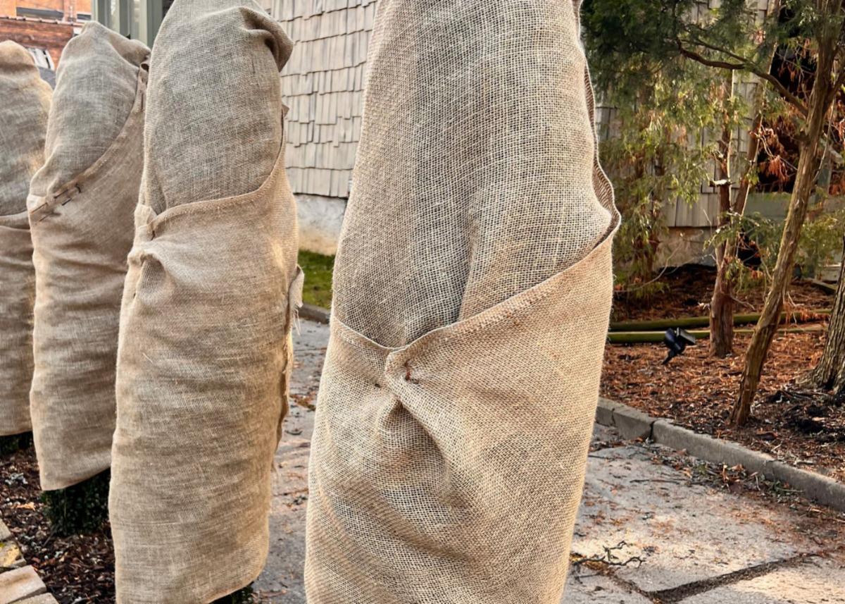 Broadleaf evergreens and tender shrubs may benefit from burlap wraps, anti-desiccant sprays, or insulating mulch to help reduce winter burn and root stress.