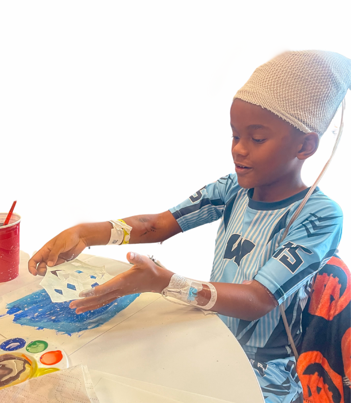This year's holiday card features artwork created by Ricky, a lively 8-year-old who recently received care at Wolfson Children’s Hospital. During his stay, Ricky spent the majority of his time in the playroom, where he created several beautiful pieces of art with the Art with a Heart team.