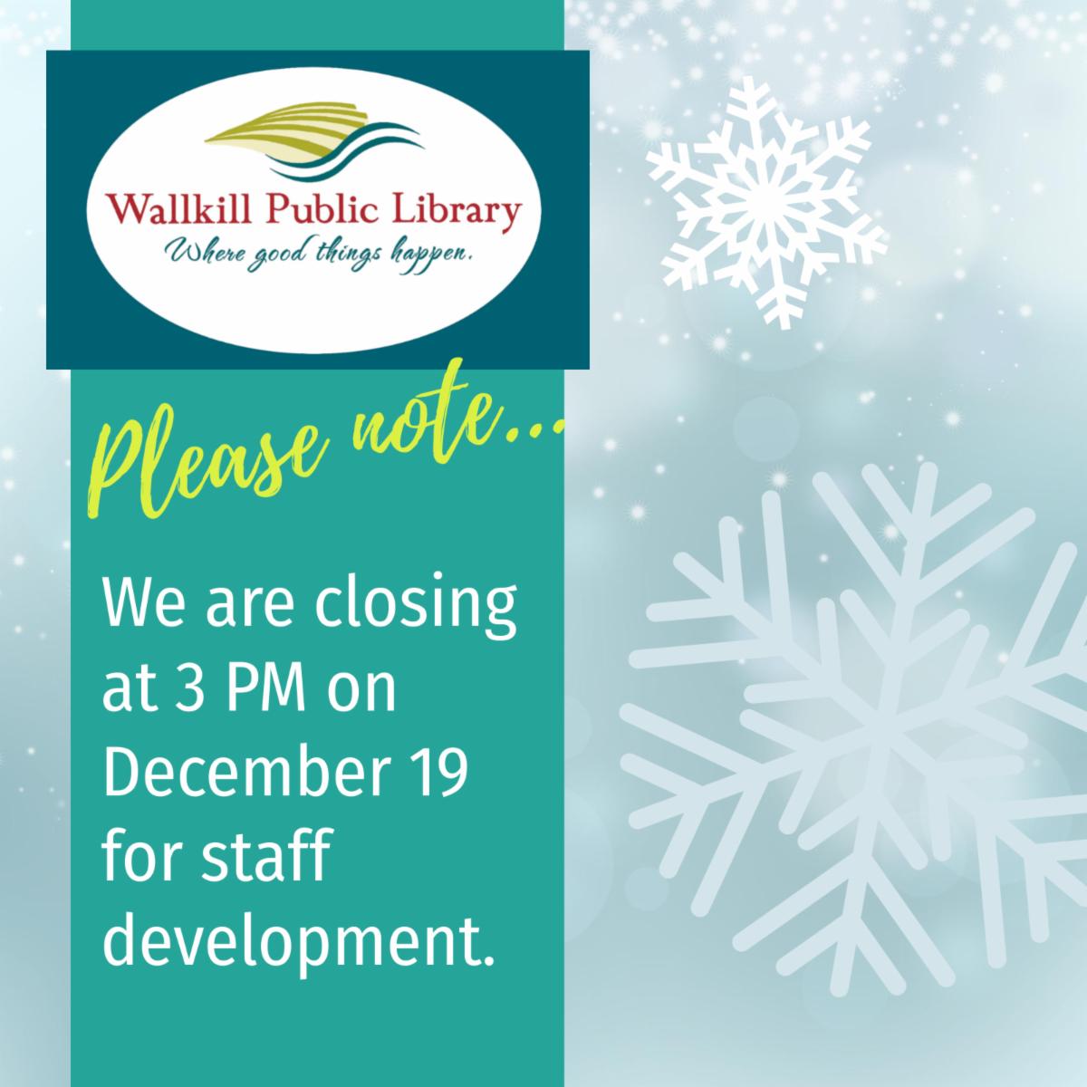 The Library will be closing at 3pm on Friday, December 19