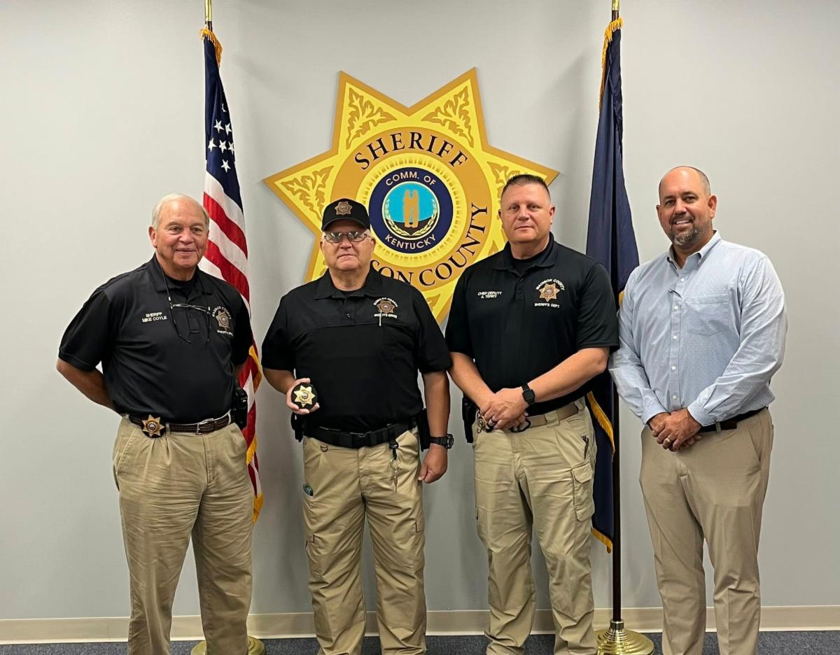 | | Lieutenant Governor Jacqueline Coleman stopped by the Laurel County Emergency Operations Center Wednesday for a briefing on tornado recovery efforts. She's pictured with Assistant EM Director Daryl Thompson, Assistant EM Director Brook Sea, Deputy Judge/Executive Mike Calebs, Judge/Executive David Westerfield and EM Director Jerry Rains. | | The McCracken County Sheriff’s Office is one of more than 1,400 sheriff offices that swore in DJ Daniel as an honorary deputy at the National Sheriff's Conference recently. DJ,13, is battling cancer, and his dream is to be a police officer. He is now an honorary deputy or officer for more than 2,800 agencies across the U.S. | | KACo's Michael Ray presents a safety grant to Cumberland County Judge/Executive Luke King. | | KACo's Michael Ray recently presented a safety grant to McLean County Judge/Executive Curtis Dame. | | Lincoln County Judge/Executive Woods Adams swore in Gloria Sneed as the District 4 representative for the Lincoln County Board of Education. | | Hardin County Clerk Brian D. Smith shows a newlywed couple who just said “I do” how their marriage documents will be filed and stored at the clerk’s office and how older records are kept safely. | | Sheriff Nicky Knight made sure one Calloway County camper arrived safely at the Kentucky Sheriffs' Boys and Girls Ranch. | | The Madison County Sheriff’s Office welcomed Steven Karkoski as its newest court security officer. He was officially sworn in by Madison County Judge/Executive Reagan Taylor and is pictured here with Sheriff Mike Coyle and Chief Deputy Anthony Terry. | | Jessamine County Judge/Executive David West spoke at a ribbon cutting ceremony for the new Nicholasville-Jessamine County Parks and Recreation pickleball courts. | | Stronger Counties. Stronger Kentucky. | | | | |