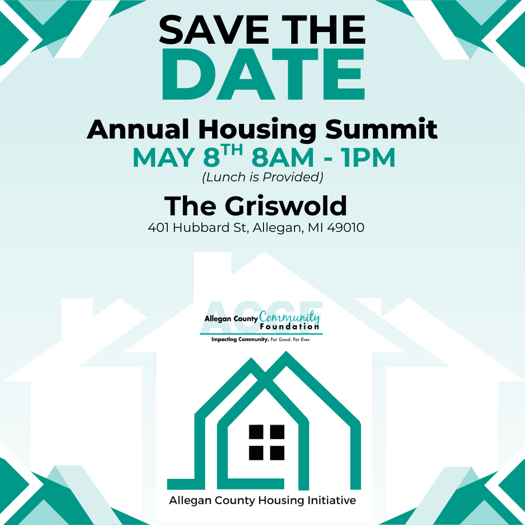 Municipal leaders, developers, builders and advocates for housing are invited to attend the Allegan County Community Foundations 2nd Housing Summit taking place on Friday May 8 from 8:00-1:00.