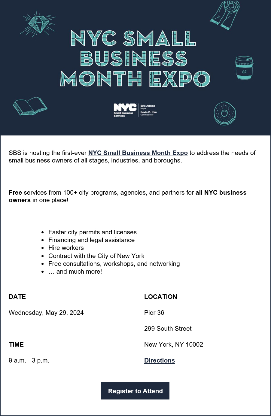 NYC DEPARTMENT OF SMALL BUSINESS SERVICES TO HOST “FREE” NYC SMALL BUSINESS MONTH EXPO | |