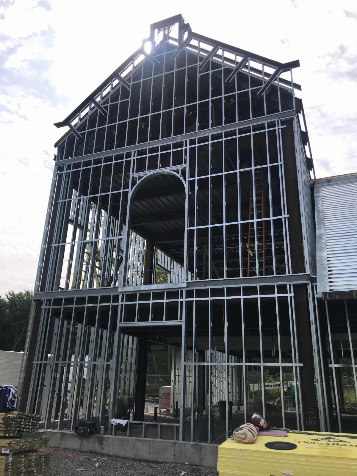 Steel framing is complete, concrete foundations poured, and walls and windows are coming soon!