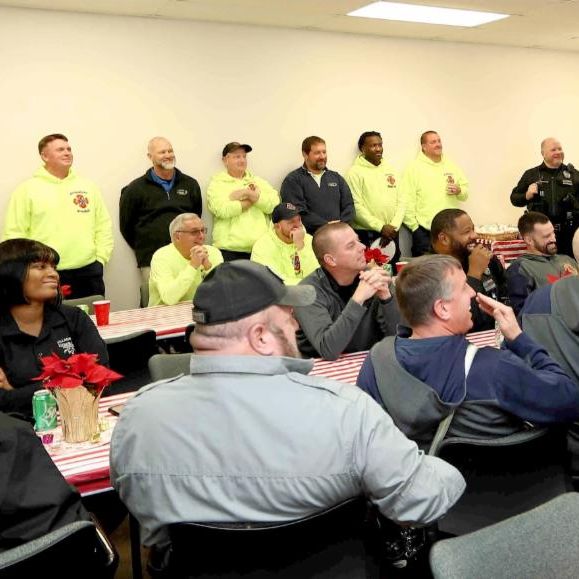 Maintenance, Police, Fire, Dispatch and Administration personnel share introductions.