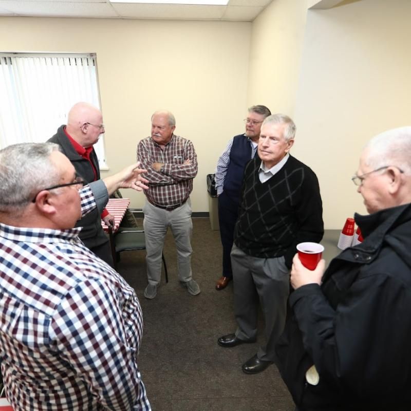 Amberley Village retired personnel in a candid moment catching up at the annual holiday luncheon.