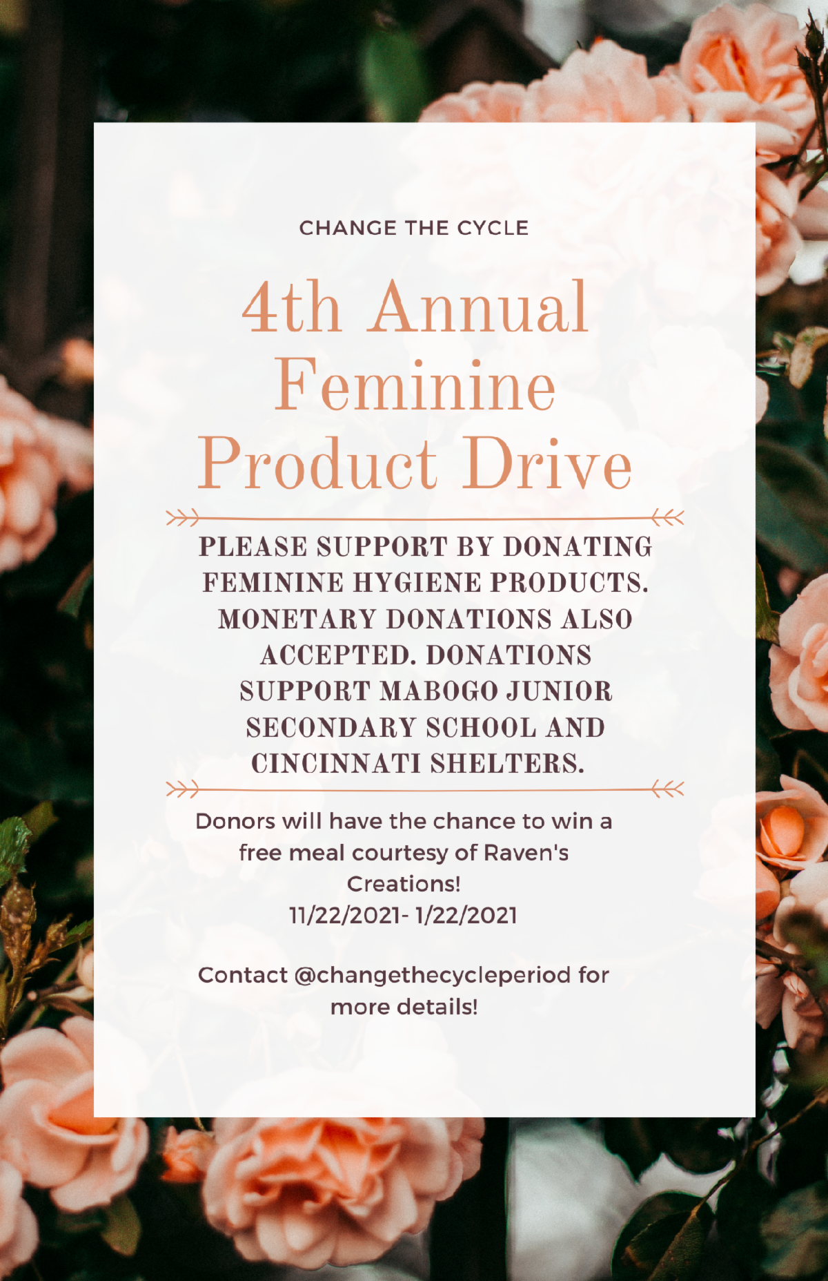 4th Annual Change the Cycle Feminine Product Drive Continues Through January 22