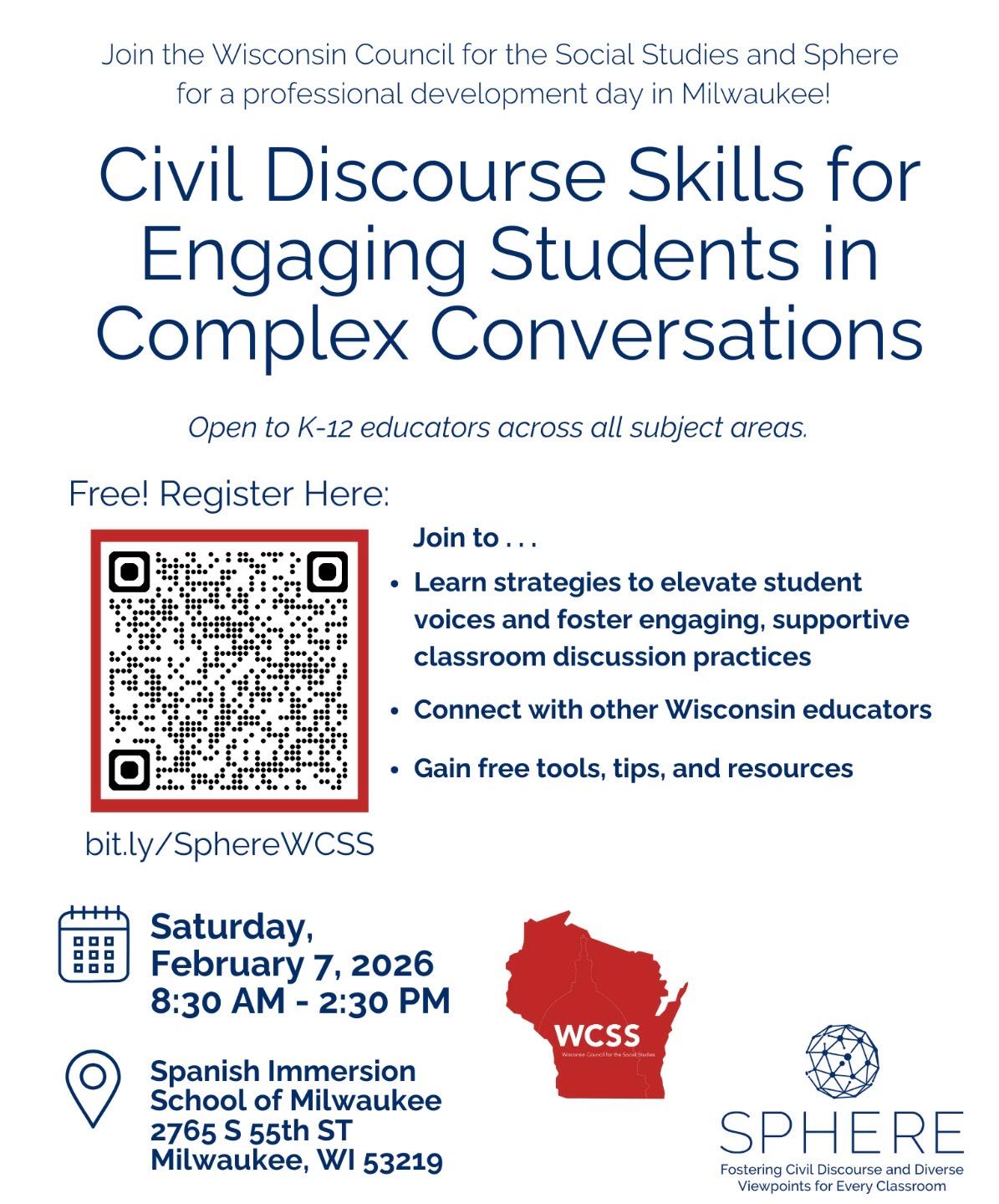 And the sessions? They bring the same energy. You’ll find hands-on inquiry and literacy-rich social studies, thoughtful conversations about civic engagement and civil discourse, and Wisconsin-focused sessions on elections, licensure updates, and local history. There are also creative and timely sessions on AI, teaching in polarized times, and elevating student voice—exactly the kind of stuff that sparks new thinking and leads to meaningful classroom conversations on Monday morning.