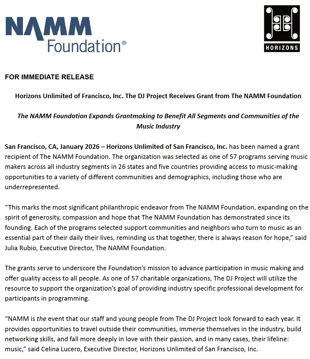 said Celina Lucero, Executive Director, Horizons