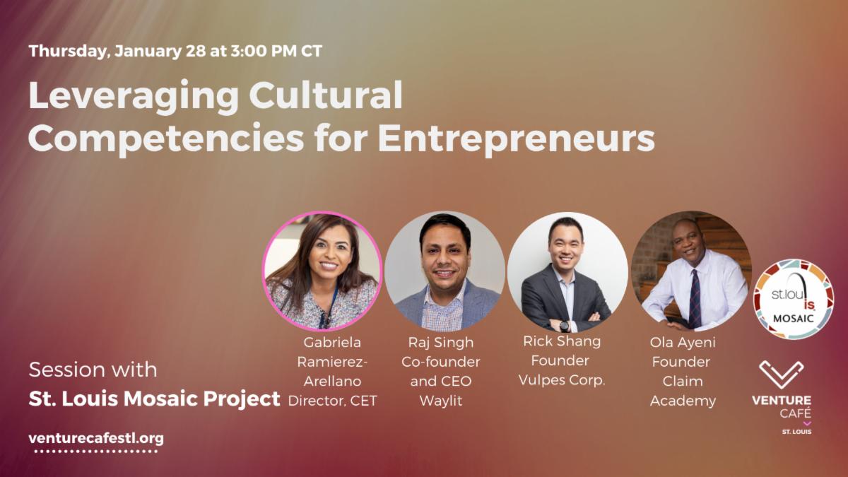 Join us for a Venture Cafe virtual session on Thursday, January 28, from 3 pm - to 4 pm featuring four successful foreign-born entrepreneurs who will share how they adapted to build a successful business in St. Louis. Hear panelists Raj Singh (India) Arch Grant winner and founder of Waylit; Rick Shang (China), founder of Vulpes Corp.; and Ola Ayeni (Nigeria) founder of Claim Academy discuss how they utilized their background as immigrants to their advantage as entrepreneurs. The panel discussion will be moderated by Gabriela Ramírez-Arellano, the new Executive Director of Center for Emerging Technology (CET) and the Director of Entrepreneurship at Cortex, who also is a small business owner.