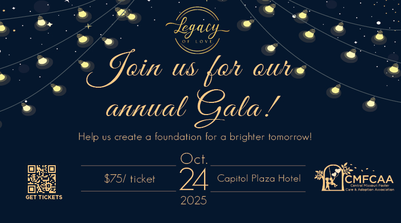 JEFFERSON CITY, Mo. — Central Missouri Foster Care & Adoption Association (CMFCAA) will host its annual Legacy of Love Gala on Friday, Oct. 24, 2025, at Capitol Plaza Hotel, 415 W. McCarty St., Jefferson City.
