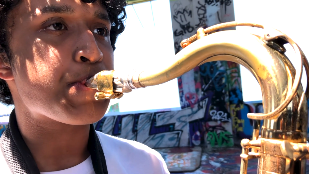 We wrote about "Yaya" in March 2020, working on his music theory and struggling with a landlord who would not allow him to practice his saxophone in his family's Richmond apartment, even during the lockdown. After experiencing months of stasis, his mother moved the family to Georgia so she could take a job there while Yaya kept up online with his school and music work at the Center – especially with his Jazz mentor, Howard Wiley, East Bay Center's Jazz Faculty Chair. This spring, Yaya moved back to the East Bay and participated in a workshop project with guest faculty Lisa Mezzacappa and Beth Lisick. Along with four recent Young Artist Diploma alumni – Alyssa Villanueva (aka Essa Vilanue), Kalin Freeman (aka KJ Focus), Maria Figueroa, and Heaven Robinson, Yaya worked on an original theater/film project exploring what makes a home and learning about what goes into making an opera. This summer, Yaya will participate in a five-week program at Berklee College of Music in Boston on full scholarship, thanks to the Center's special partnership with the College. In September, Yaya will continue studying at the Center while applying to colleges around the country. Stay tuned for more from a student whose smile is as deep as his perseverance.