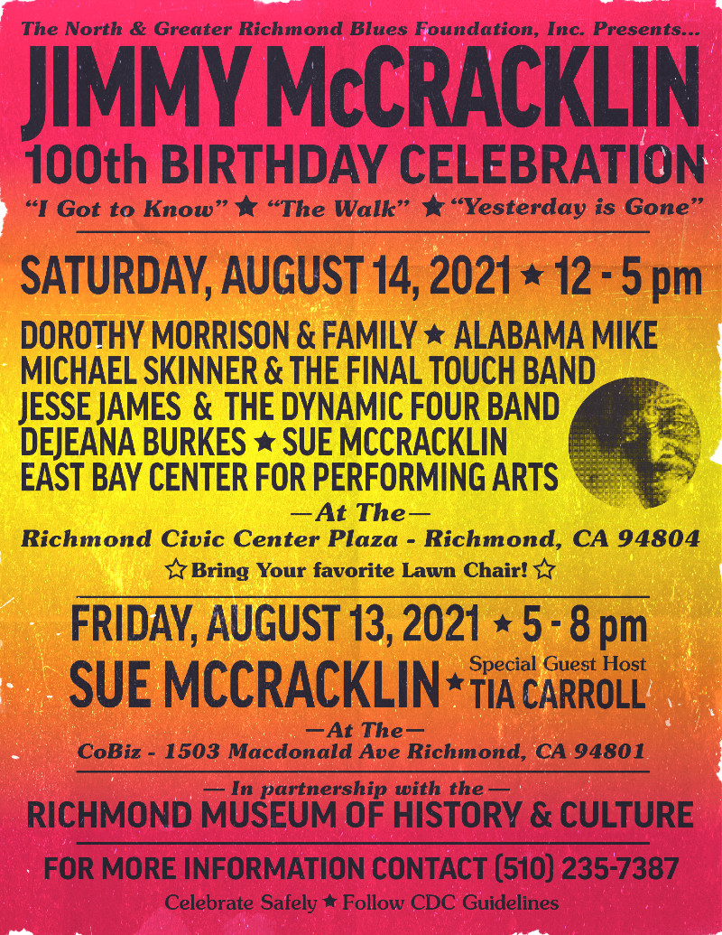 Howard Wiley, East Bay Center's Jazz & Blues Faculty Director, will lead a group of local musicians representing the Center at this celebration of late Richmond blues legend Jimmy McCracklin. Their repertoire will include recently composed, original blues pieces by Howard!