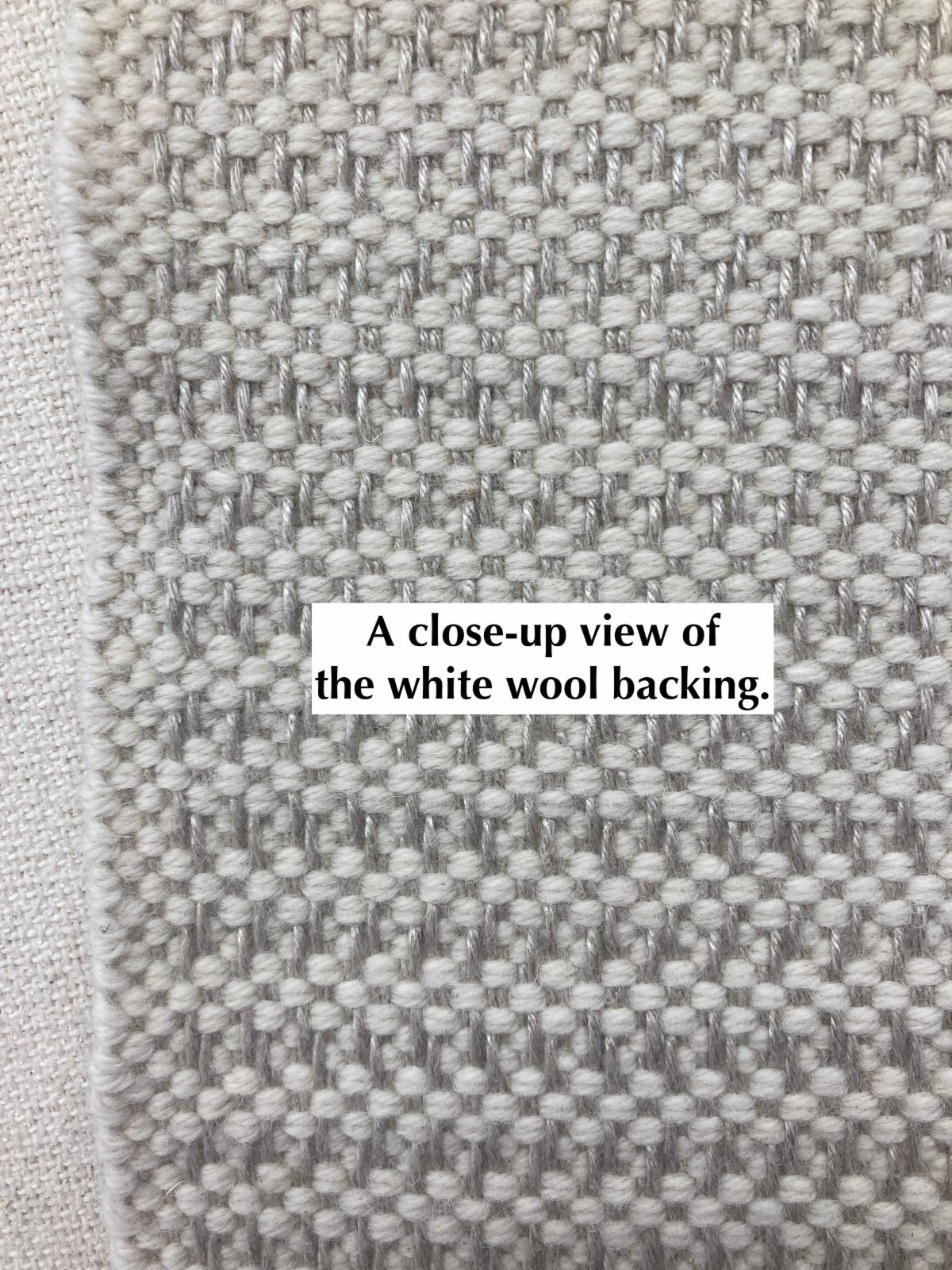 I'm not sure why some backing is gray and some is white, but the white backing rows are closer together--about 26 rows per linear foot giving a more dense rya.