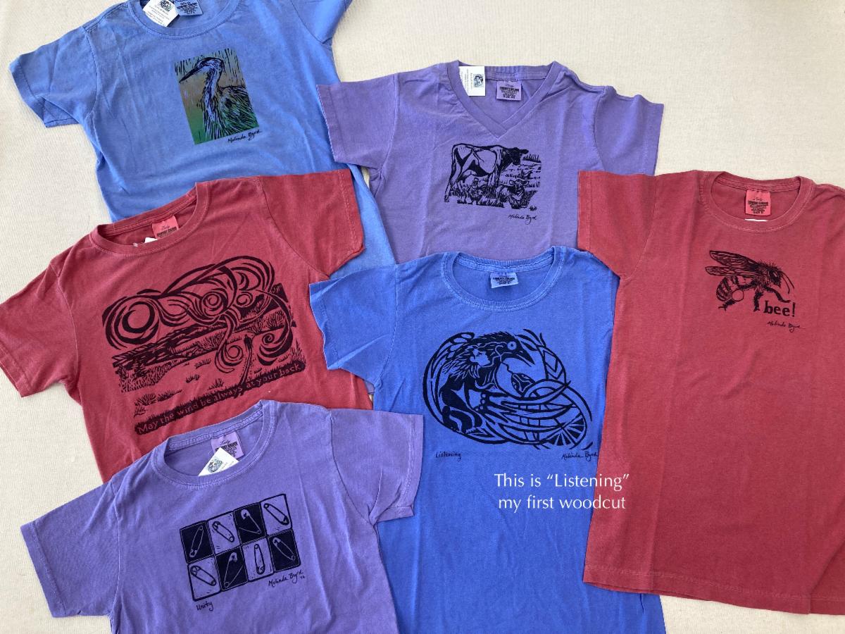 So I have drastically reduced the silkscreened SMALL shirts to $10 which is pretty much give away price. The reduced price goes through August 2025, then what's left will go back to $20. Even if YOU don't wear T-shirts or you aren't exactly "small" you probably know someone who would love to have one. Buy now so you'll have it for their birthday or holiday gift--or not. I'm just letting you know they need a home and I need the space for other things. Click on the links below.
