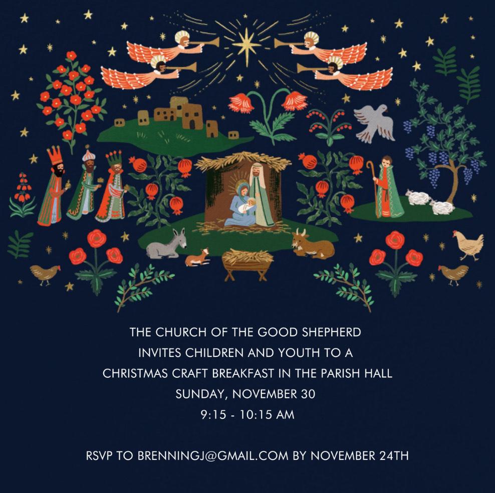 This much loved annual candlelight service, sung by the Alleluia and Good Shepherd Choirs, will include traditional carols, hymns, and anthems. A reception will follow in the Parish Hall.
