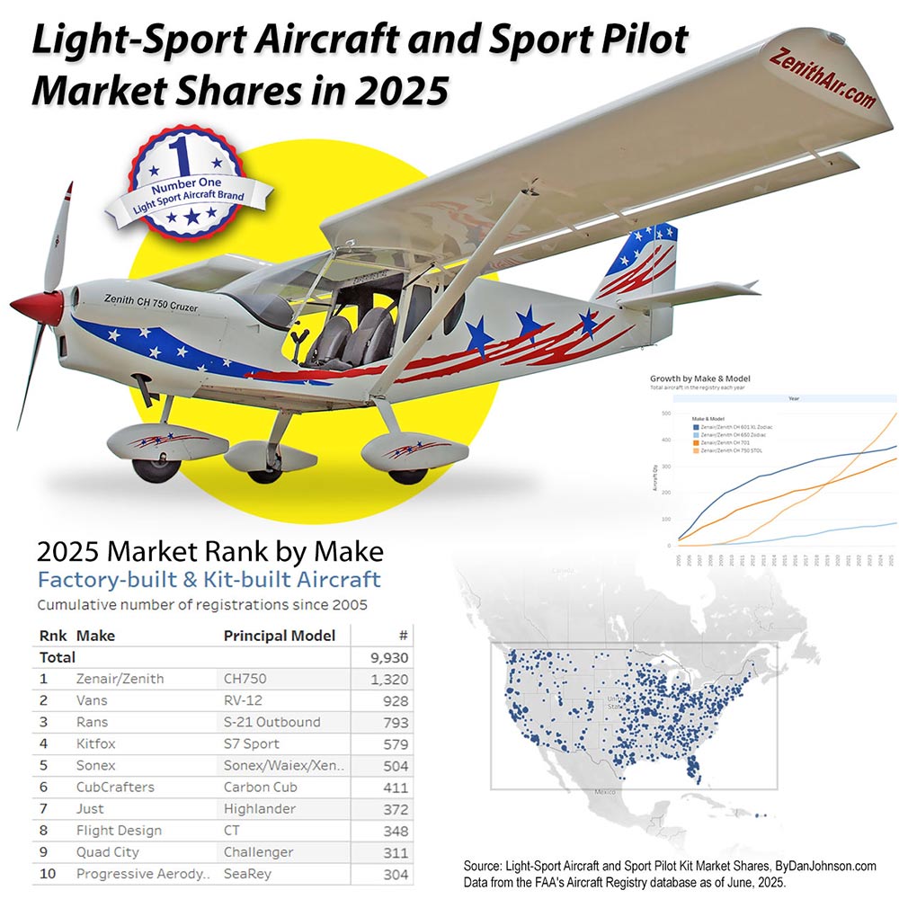 Zenith Aircraft has been the top brand in Light Sport Aircraft for many consecutive years (based on actual FAA registrations) — but with MOSAIC the definition of "light sport" just got a whole lot bigger and now includes most of the general aviation fleet!
