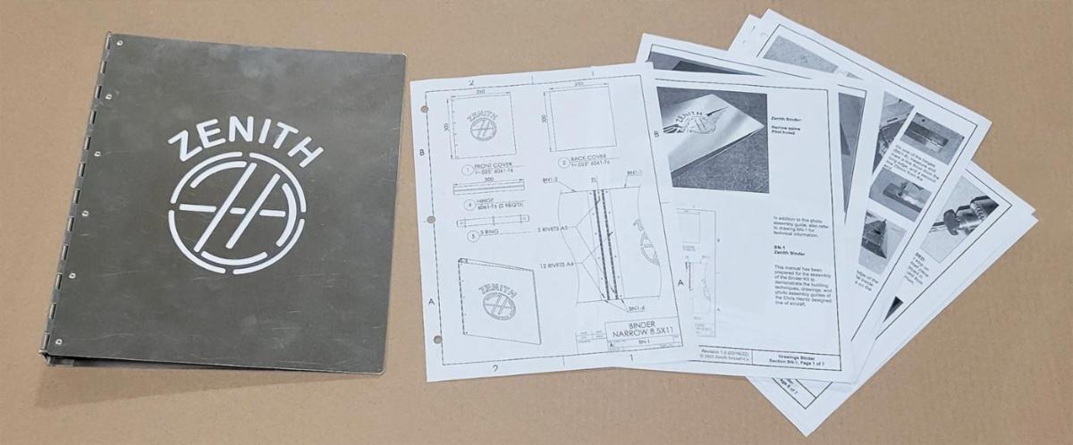 | The do-it-yourself (DIY) Zenith binder kits are an effective hands-on introduction to basic sheet-metal assembly — using the same skills and tools you’d use to build a Zenith airplane kit. And when you're done, you’ve created a durable, good-looking 3-ring binder that’s as practical as it is fun to build. | | | |