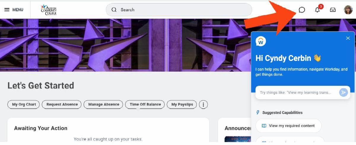 Look for the chat bubble icon in the top-right corner of your Workday home screen. Click it, type what you need, and let the Assistant do the heavy lifting.