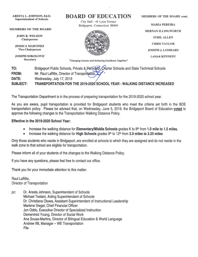1) Transportation Eligibility Update, 2) Senior Night and 3) Uniform Requirements.