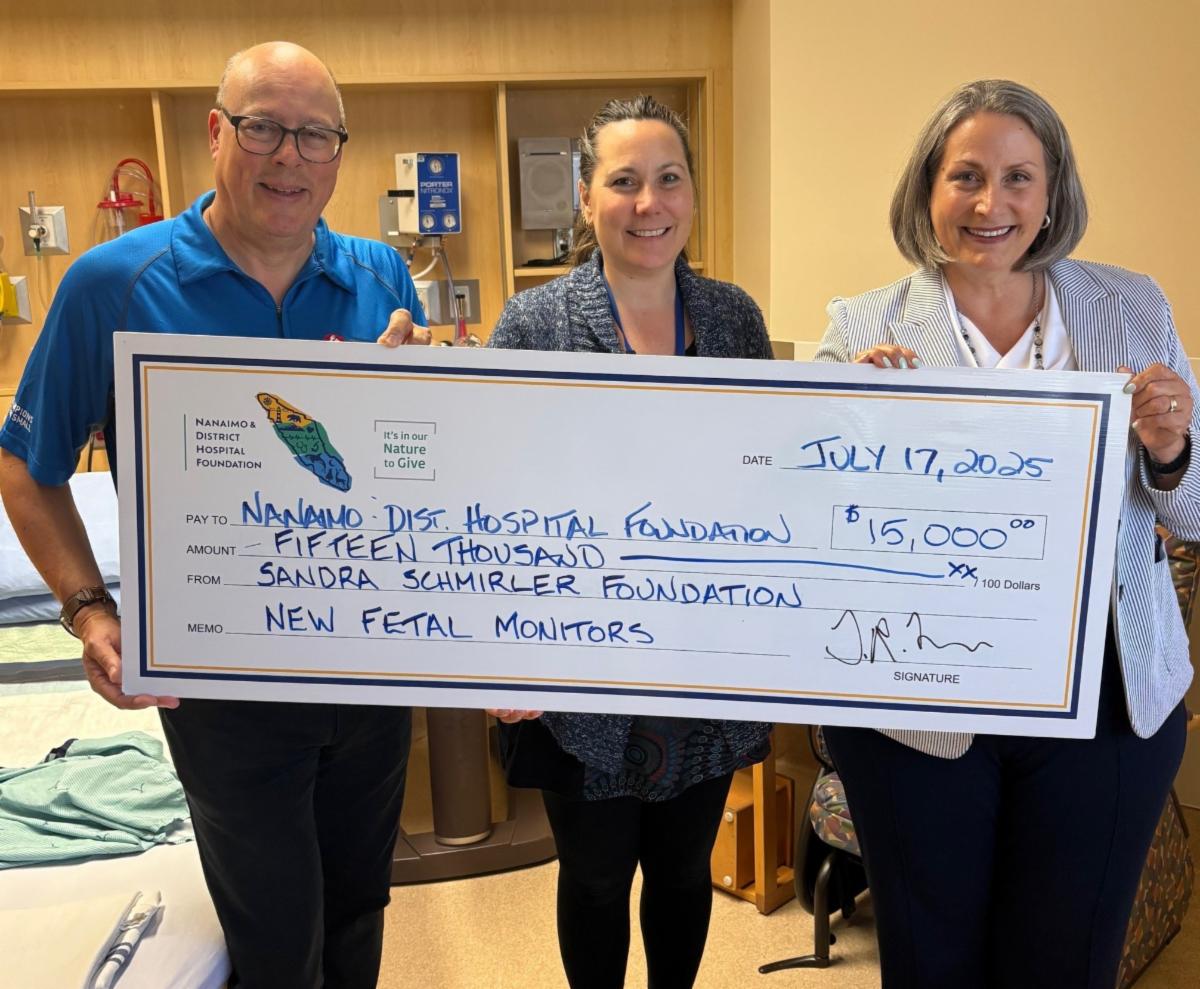 Thanks to the Sandra Schmirler Foundation, our littlest and most fragile patients will benefit from new life-saving equipment in our Maternity Unit at Nanaimo Regional General Hospital. Their generous gift of $15,000.00 will go towards the purchase of replacement, state-of-the-art fetal monitors that provide essential care for high-risk pregnancies.