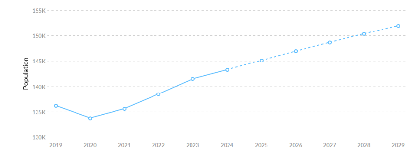 As of 2024, Harnett County's population increased by 5.2% since 2019, growing by 7,101. The population is expected to increase by 6.1% between 2024 and 2029, adding 8,706.