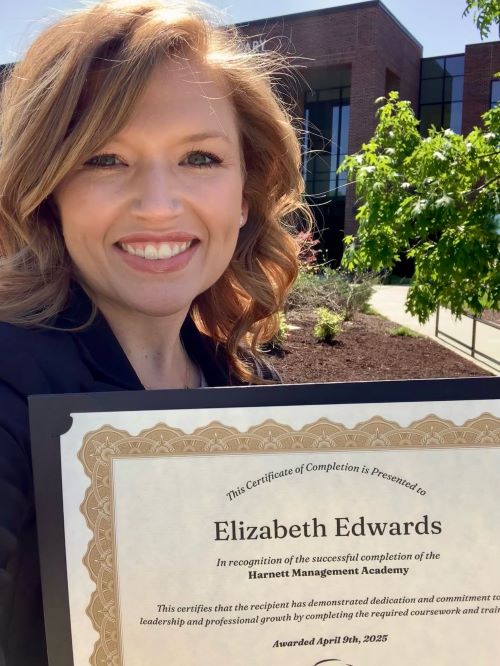 Elizabeth Edwards, Marketing Director for Harnett County Economic Development, graduated from the inaugural Harnett Management Academy on April 9. The nine-month leadership development program is designed to shape Harnett County’s future leaders. Led by the Human Resources and Risk Management Department, the program’s first cohort included 18 employees from across Harnett County Government and focused on enhancing leadership, management, and communication skills through monthly sessions with a leadership coach. READ MORE