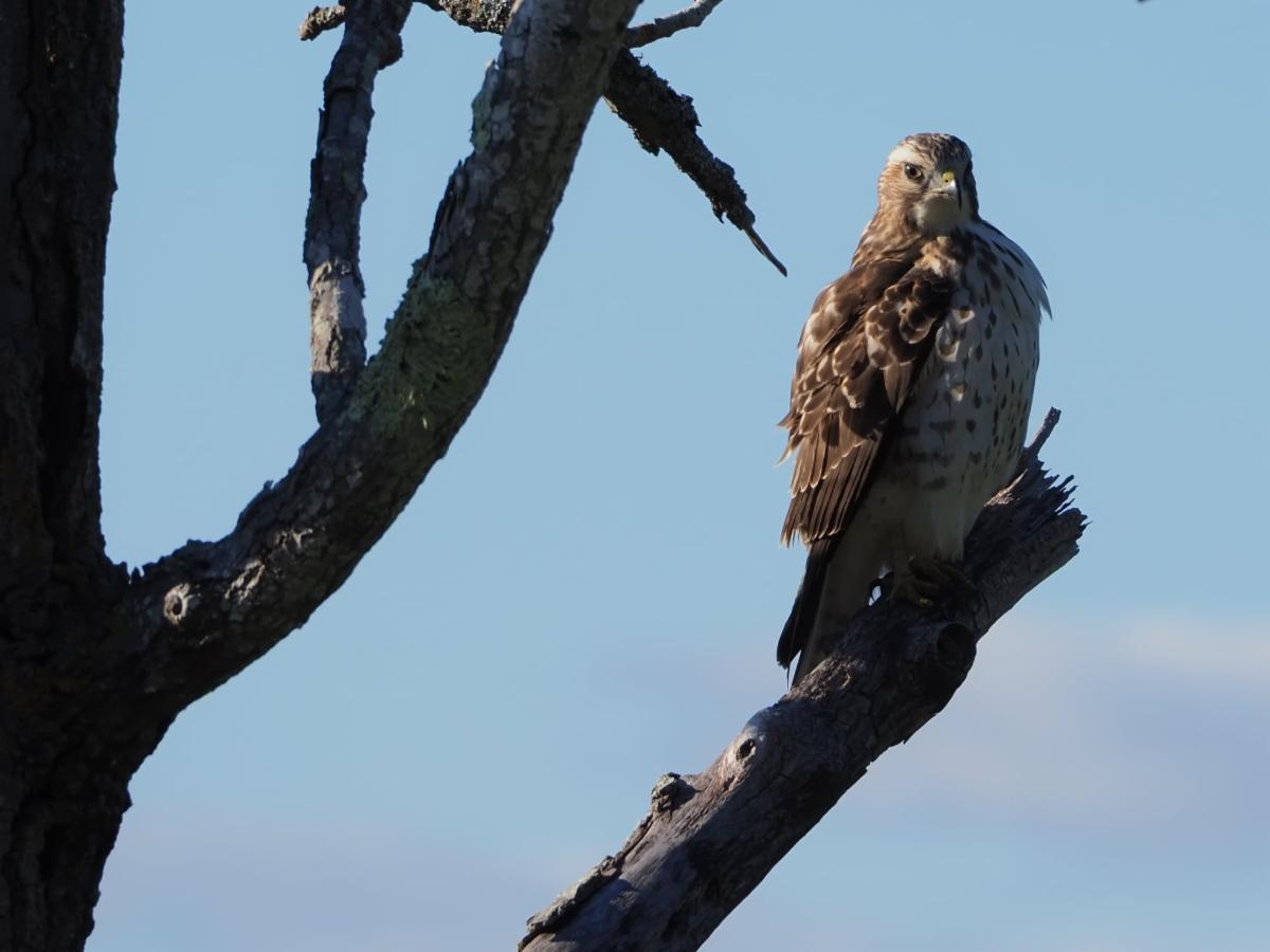 A young Red Tailed Hawk has been a regular visitor this month.