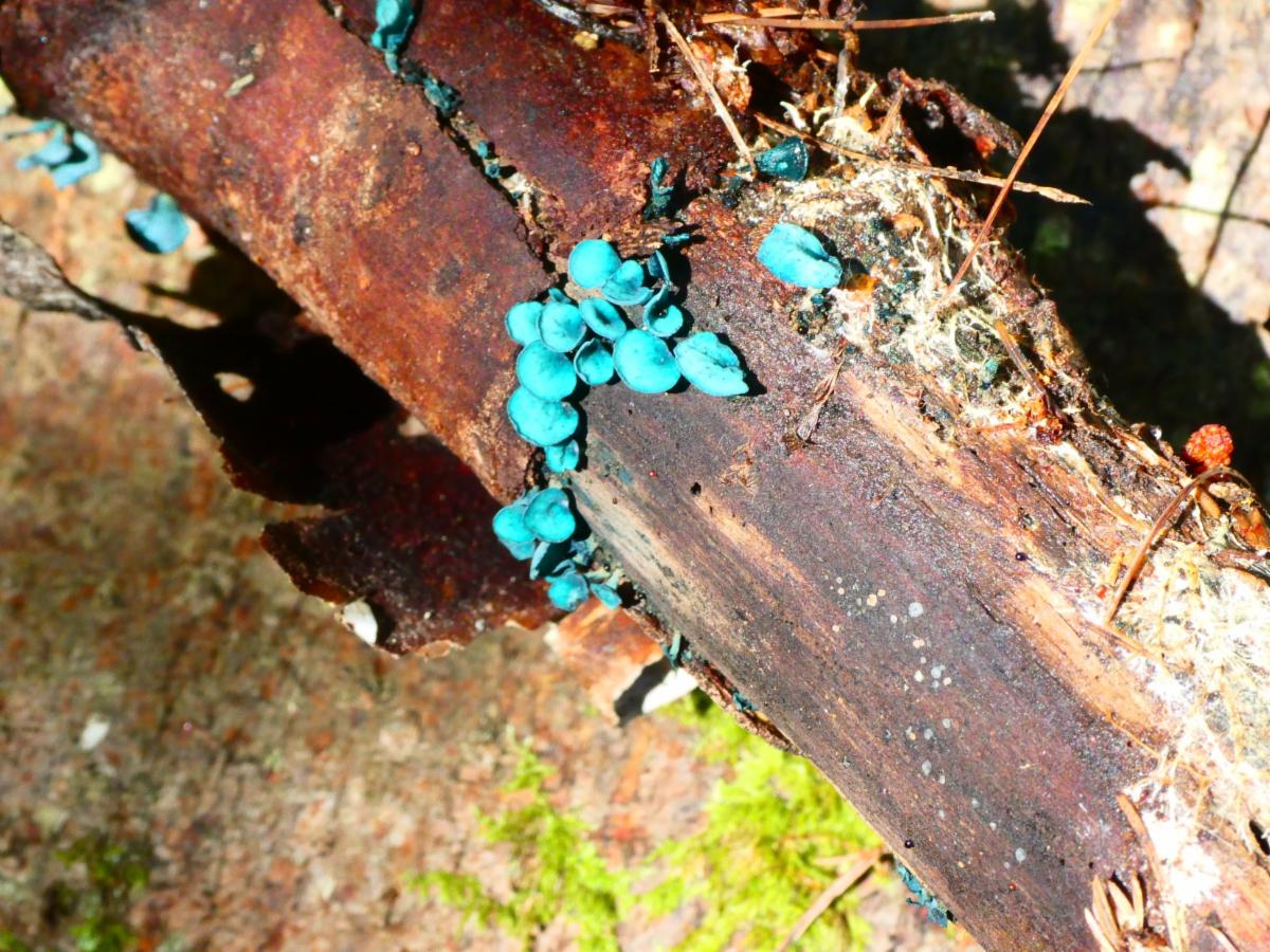 "Mushrooms are like an apple of the Fungus Kingdom" and many of them are waiting to re-hydrate with the rain and basically pop up in the forest to fruit and spread their spores! These fungi are so important to forest ecology. Slime mold, jelly mushrooms, polypores, boletes, JARs (just another russula), and an amazing find of blooming green stain fungus! And near the end of the trail at Widgeon Cove, what was likely the deadly 3+-inch diameter Destroying Angel mushroom near an oak.