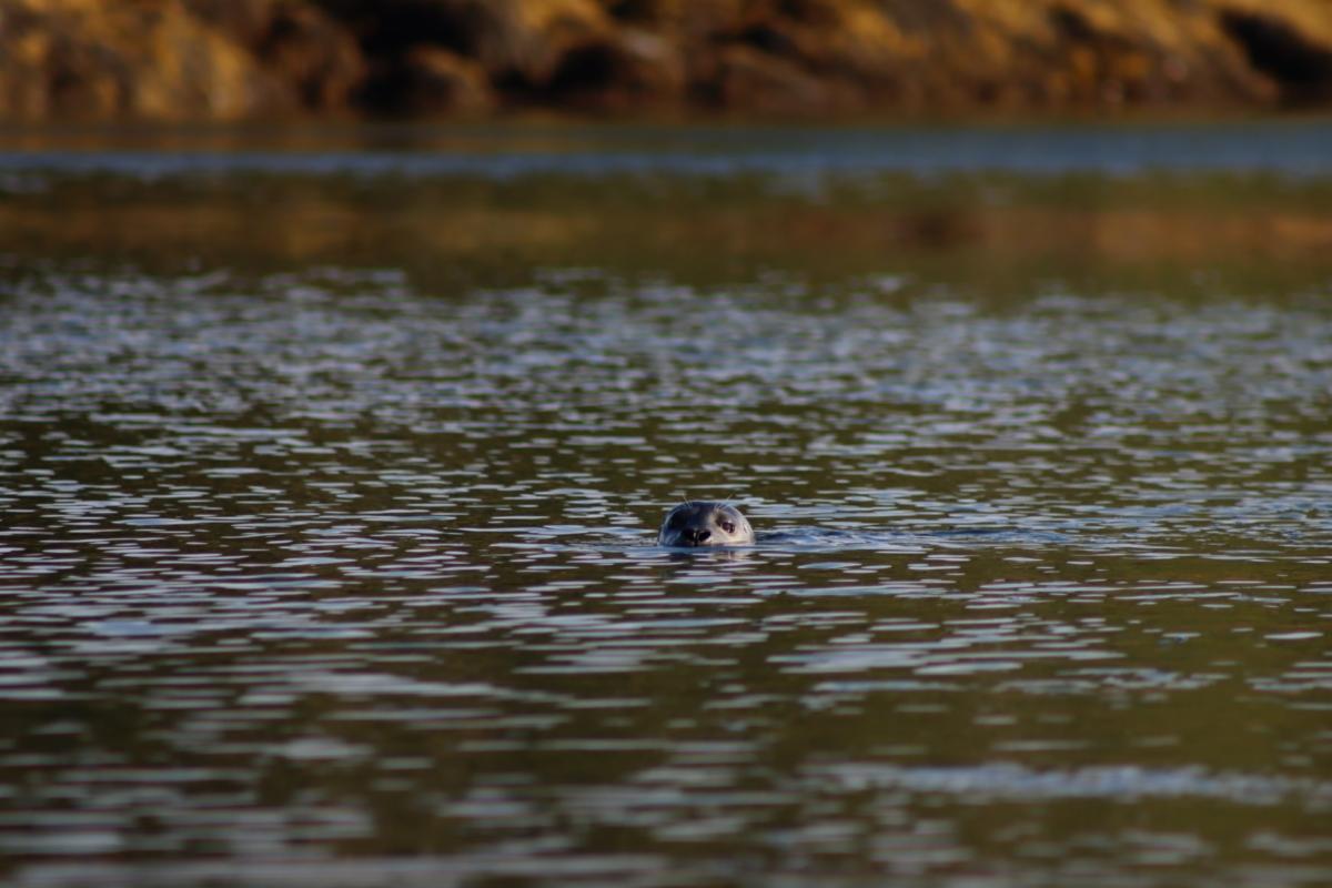 Quahog Bay, Harbor Seal. This seal kept an eye on me and followed me for about a mile while I was rowing just after sunrise.